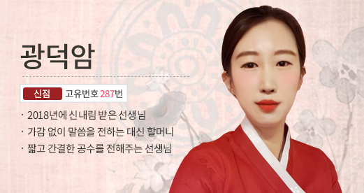 신규 상담사 "[신점] 광덕암 287번" 선생님이 새롭게 등록되었습니다.
