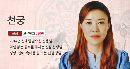 신규 상담사 "[신점] 천궁 230번 " 선생님이 새롭게 등록되었습니다.