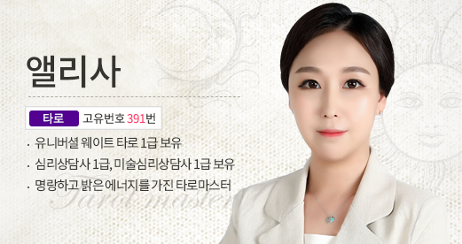엘리사 상담사는 명량하고 밝은 에너지로 지친 당신에게 좋은기운을 잔뜩 넣어 줄 수 있는 타로마스터입니다.